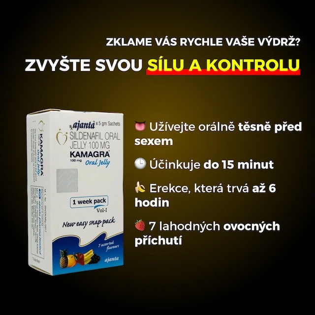 • Kdy užít: přibližně 15–30 minut před pohlavním stykem, nejlépe nalačno.